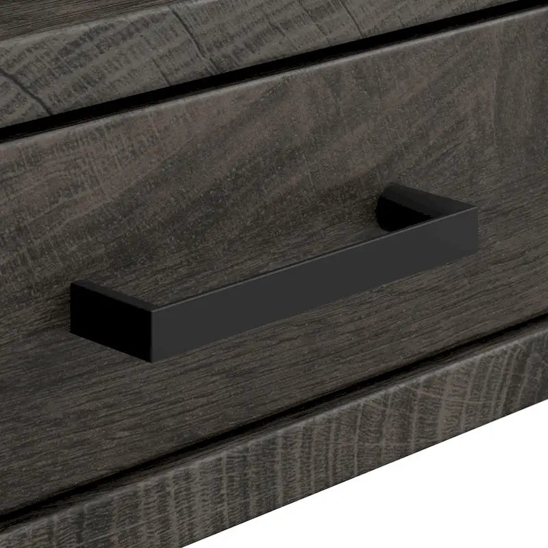 Choose the Bush Furniture Steele 54W Writing Desk to infuse your space or home office with a perfect blend of industrial design and practical functionality. This compact desk with storage supports all your equipment with a weight capacity of 200 pounds, all while serving as a writing desk, console table, or personal work area. The desk's efficient design is perfect for smaller spaces, offering plenty of room to breeze through projects and assignments with ease. 2 box drawers open on full-extension ball-bearing slides and keep writing utensils and small office supplies organized, while the open compartment is ideal for storing work-in-progress and frequently used items. Writing desk with storage boasts industrial styling that adds a unique touch to a variety of interiors. Powder-coated splayed metal legs provide strength and stability, complementing your choice of several rustic finish options. Desk with storage is finished on all sides to look great facing any direction in your work or living space. Bush Furnitures commitment to safety includes rigorous testing that meets or exceeds ANSI/BIFMA standards. This writing desk is backed by a 1 Year Manufacturers Warranty.